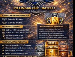 Kegiatan ini berlangsung di Gord Badminton Irsa, Kota Kendari, Provinsi Sulawesi Tenggara (Sultra) dimulai pada Sabtu (14/2/2026) pukul 14:00-22:00 WITA.