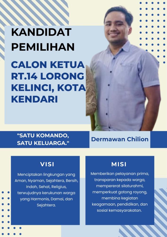Dalam pencalonannya sebagai Ketua RT, Dermawan membawa visi “Mewujudkan RT yang rukun, bersih, dan responsif terhadap kebutuhan warga,”.
