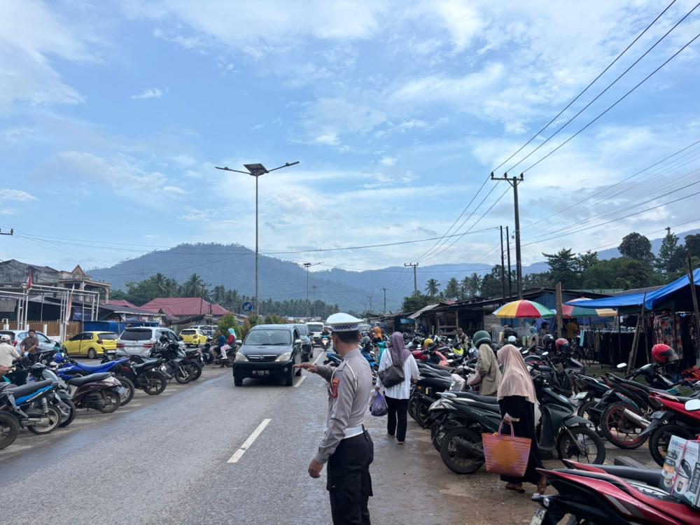 Satuan Lalu Lintas (Sat Lantas) Polres Konut melaksanakan pengaturan lalu lintas serta Pendidikan Masyarakat Lalu Lintas (Dikmas Lantas) di kawasan Pasar Lambudoni, Kecamatan Andowia, Kabupaten Konawe Utara (Konut), pada Rabu sore (4/2/2026) mulai pukul 15:30 WITA.